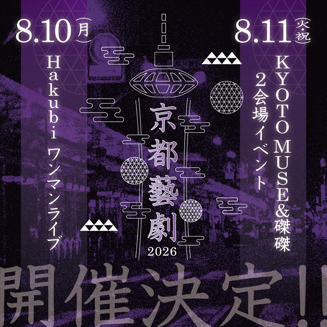 初日となる8月10日は、HakubiのホームであるKYOTO MUSEにてワンマンライブを開催します。